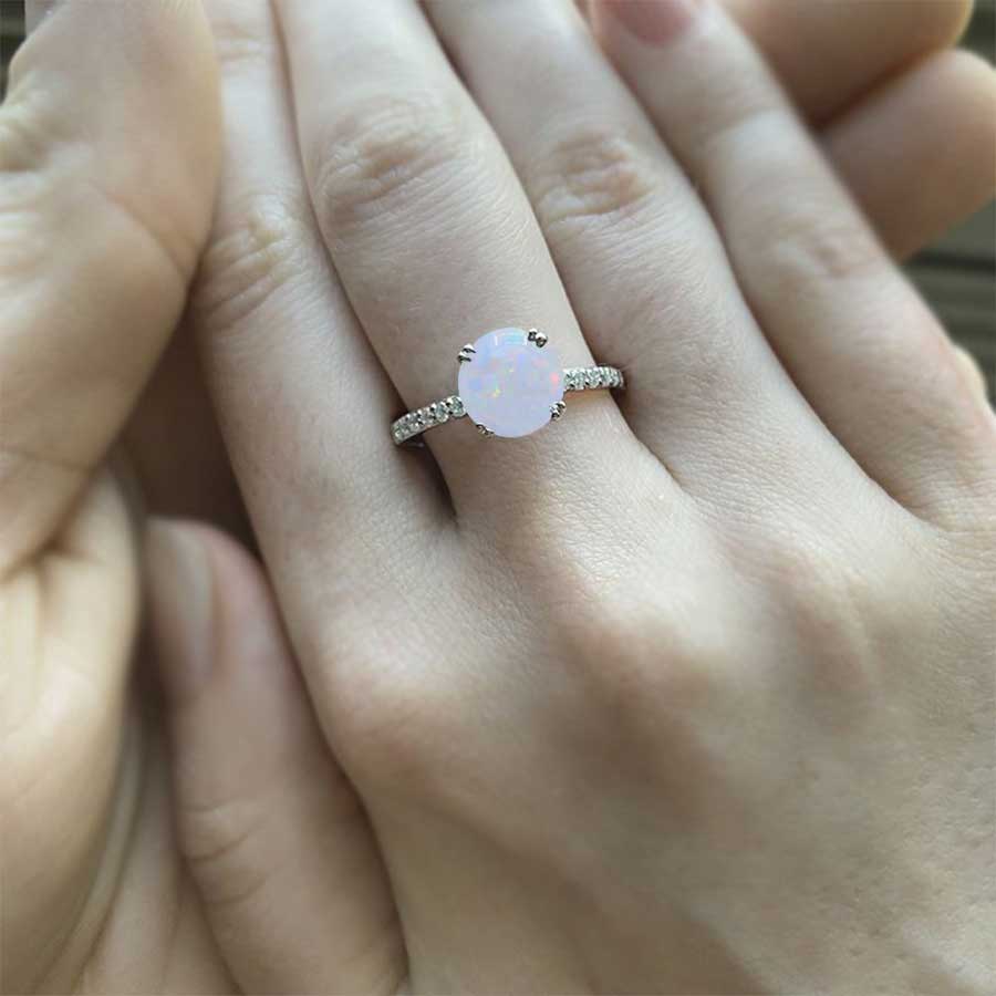 2 Carat Genuine White Opal Stone with Accent Stones 14K White Gold Rin - Giliarto