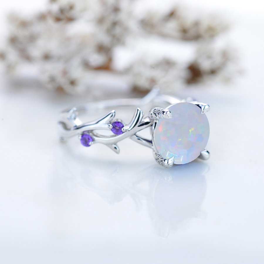 2 Carat Genuine White Opal Twig Floral White Gold Engagement Ring - Giliarto