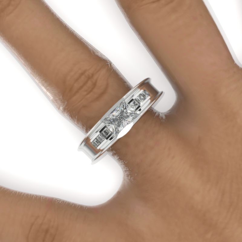 2 Carat Giliarto Moissanite Oval 8x6mm, D-Colorless, VVS1-Clarity, Ex-Cut, Ex-Polish, VG-Symmetry in 14K White Gold Men's Ring.Â