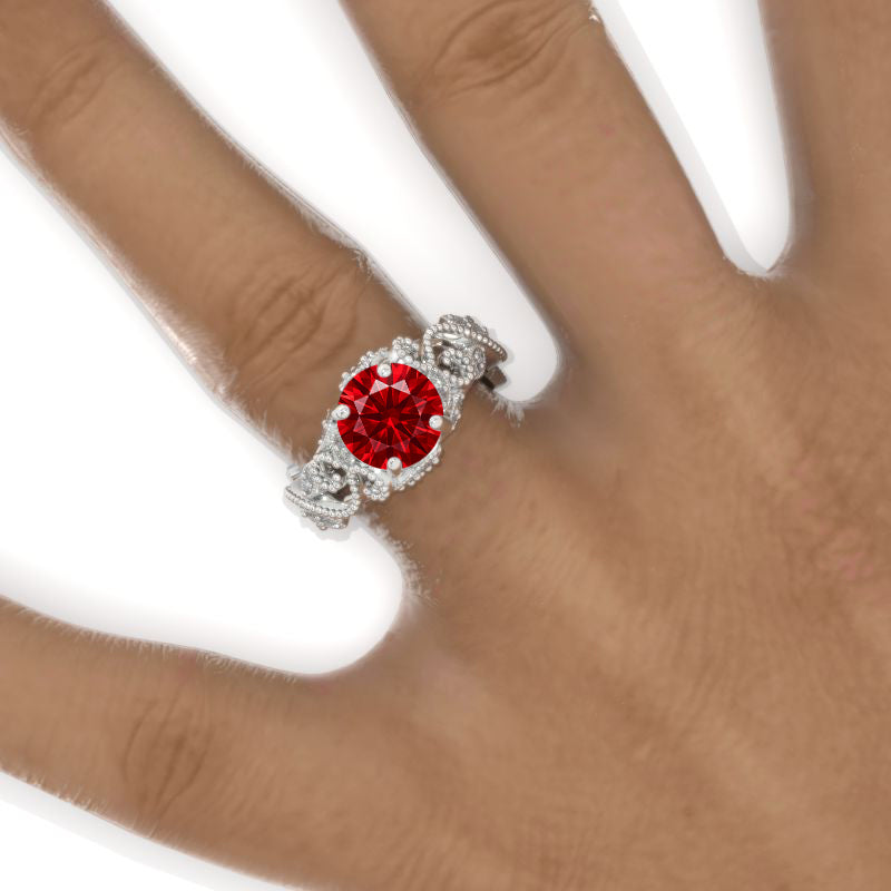 2 Carat Giliarto Ruby Ornamental Floral White Gold Engagement Ring