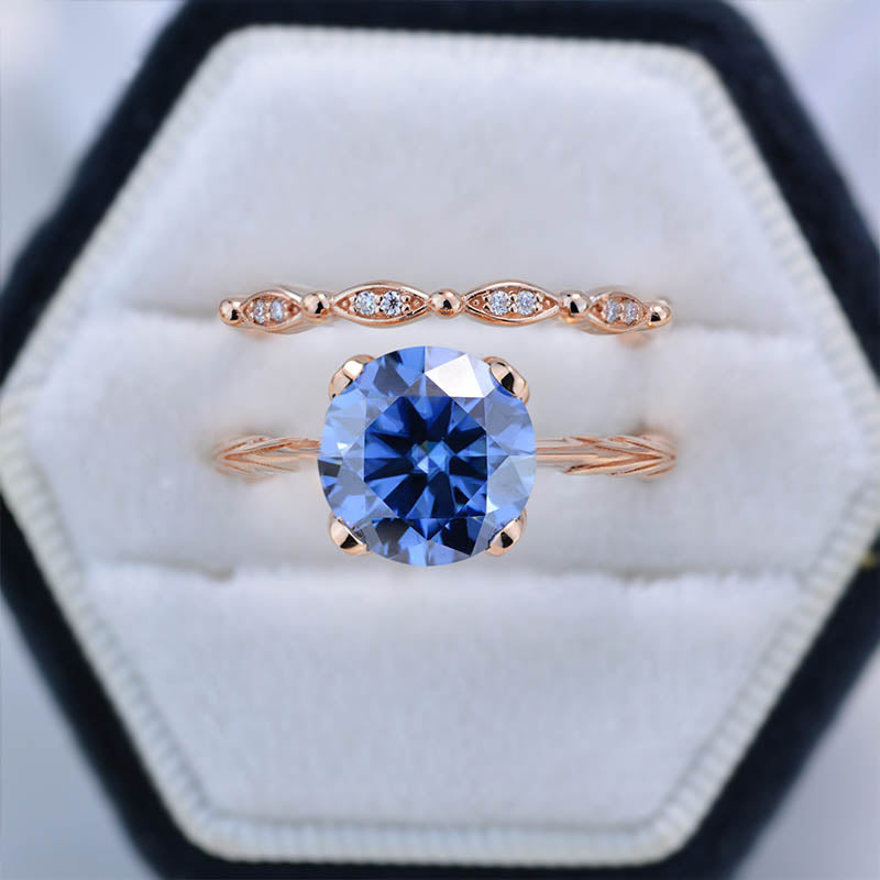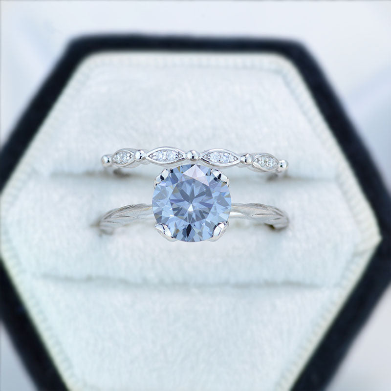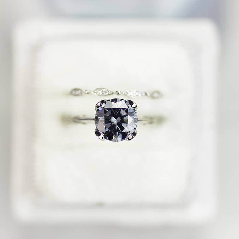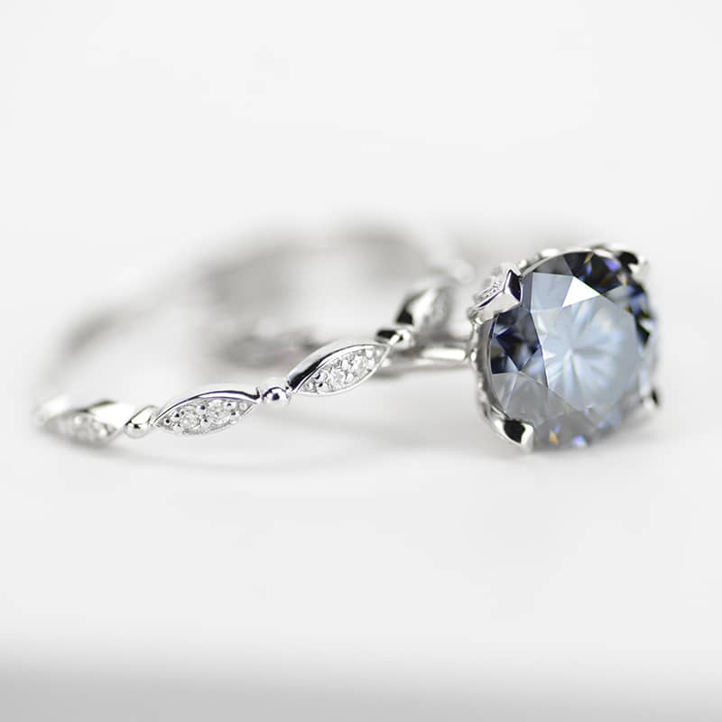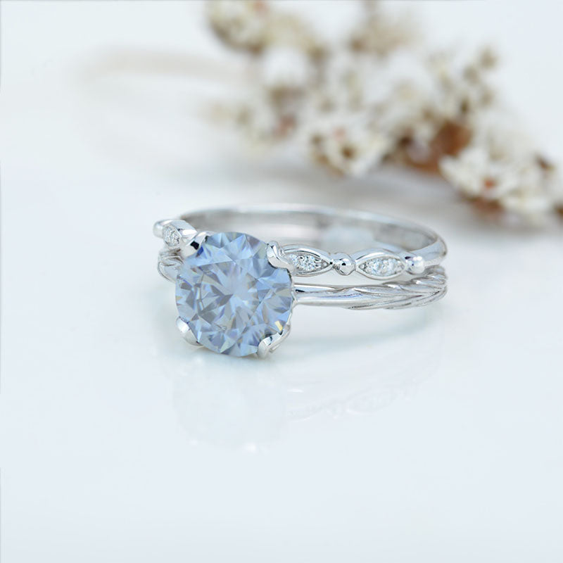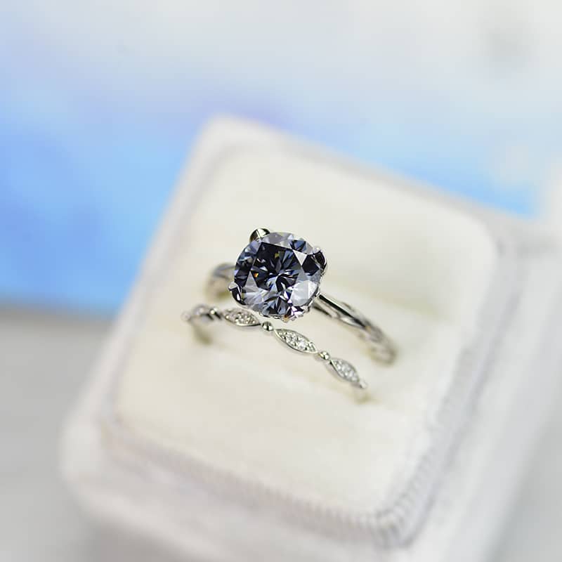 2 Carat Gray Moissanite Engagement Eternity Gold Rings Set