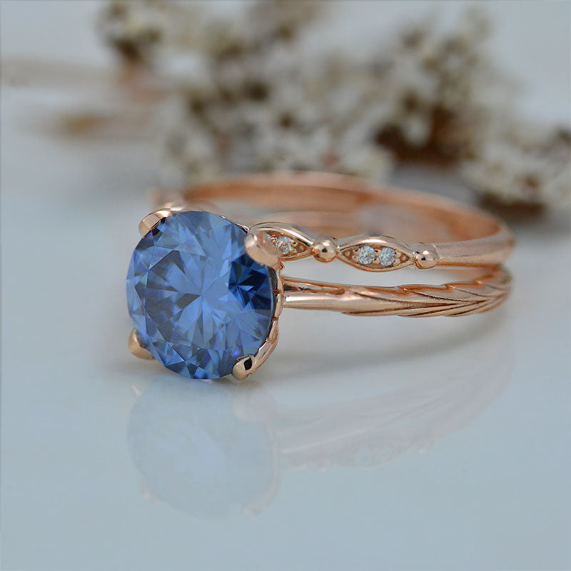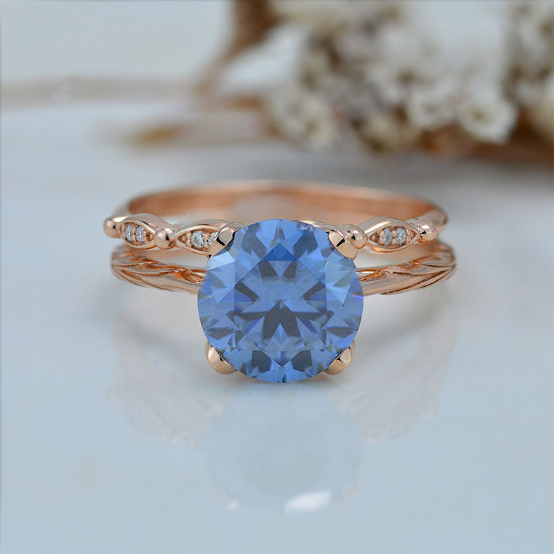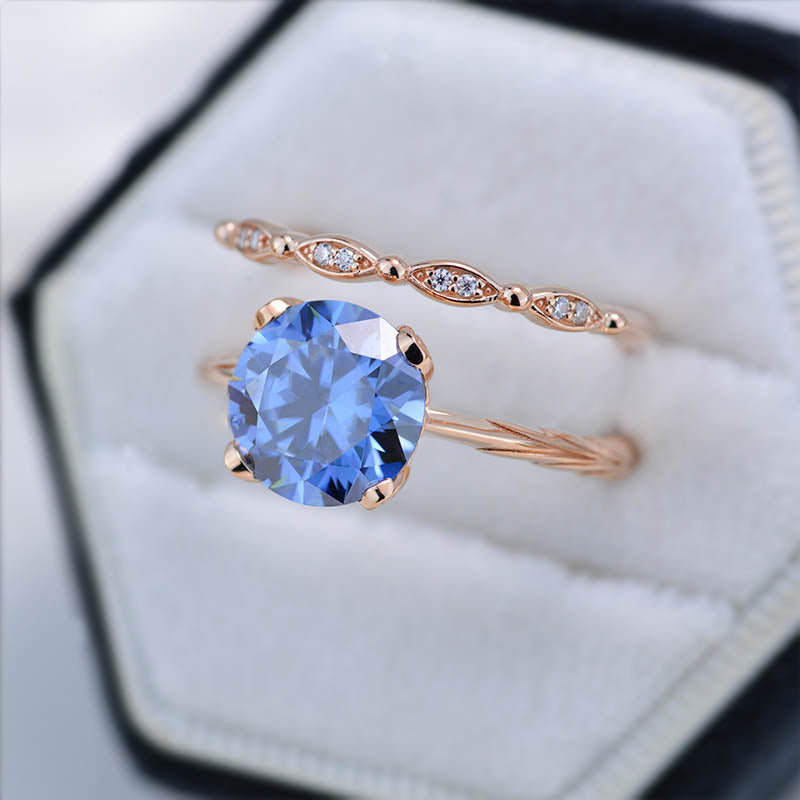 2 Carat Gray Moissanite Engagement Eternity Gold Rings Set - Giliarto
