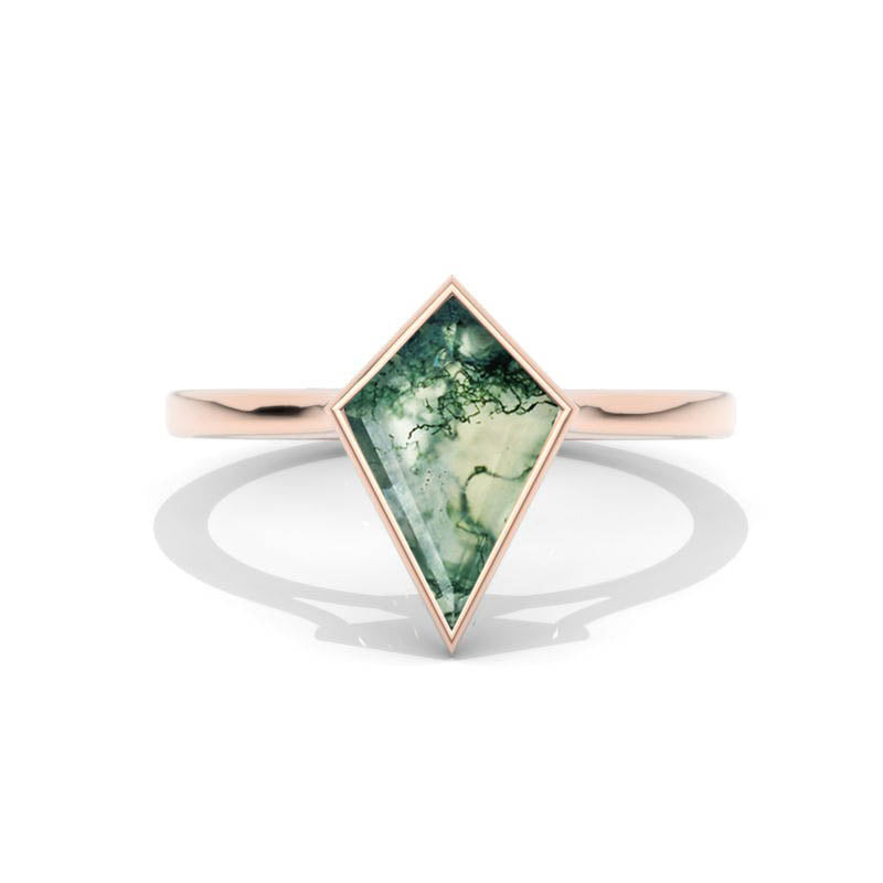 2 Carat Kite Moss Agate Bezel Set Solitaire Engagement Ring Model 721- - Giliarto