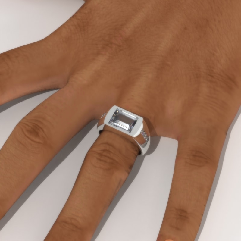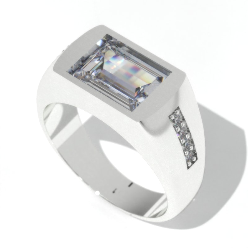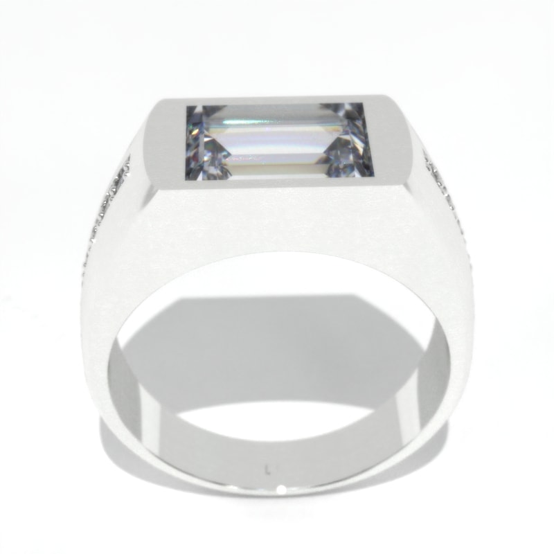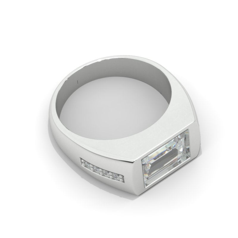 Approximately 2+ Carat LAB-Grown Diamond Baguette 8x10mm, D-Colorless, VVS1-Clarity, Ex-Cut, Ex-Polish, VG-Symmetry in 14K White Gold Men's Ring.Â
