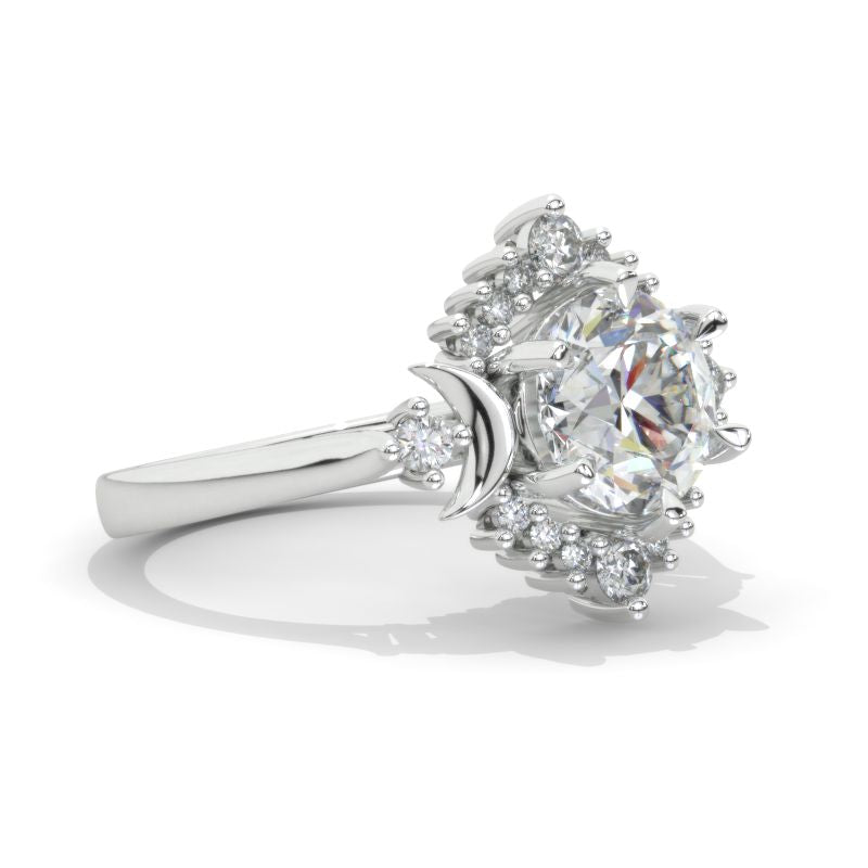 2 Carat LAB-Grown Diamond Moon Halo Gold Engagement Promissory Ring Mo - Giliarto