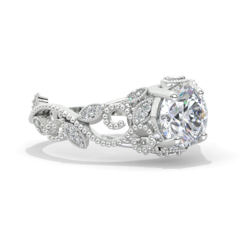 2 Carat LAB-Grown Diamond Ornamental Floral White Gold Engagement Ring Model 942