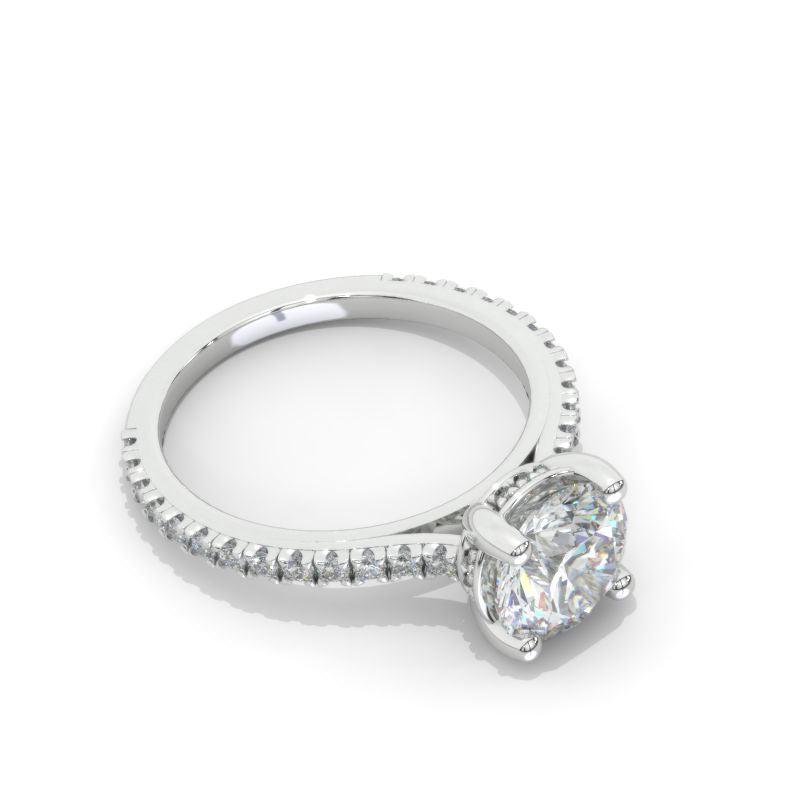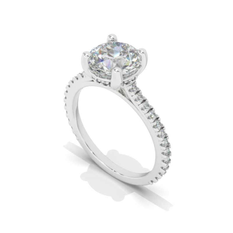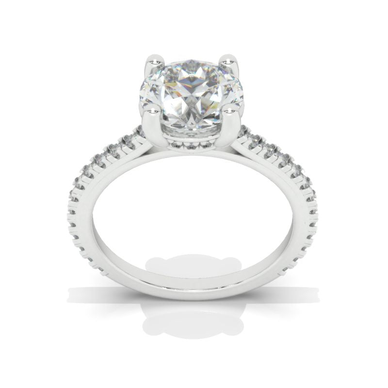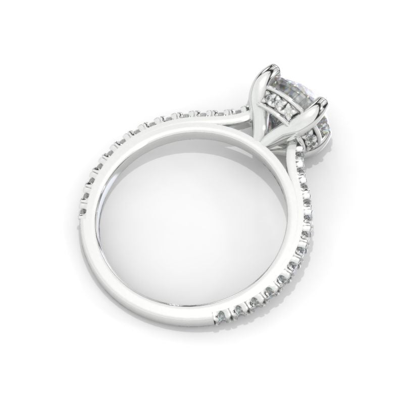 The default design option features 8mm LAB-Grown Diamond Emerald CutĀ Center StoneĀ D-Colorless, VVS1-Clarity, VG-Cut, Ex-Polish, VG-Symmetry