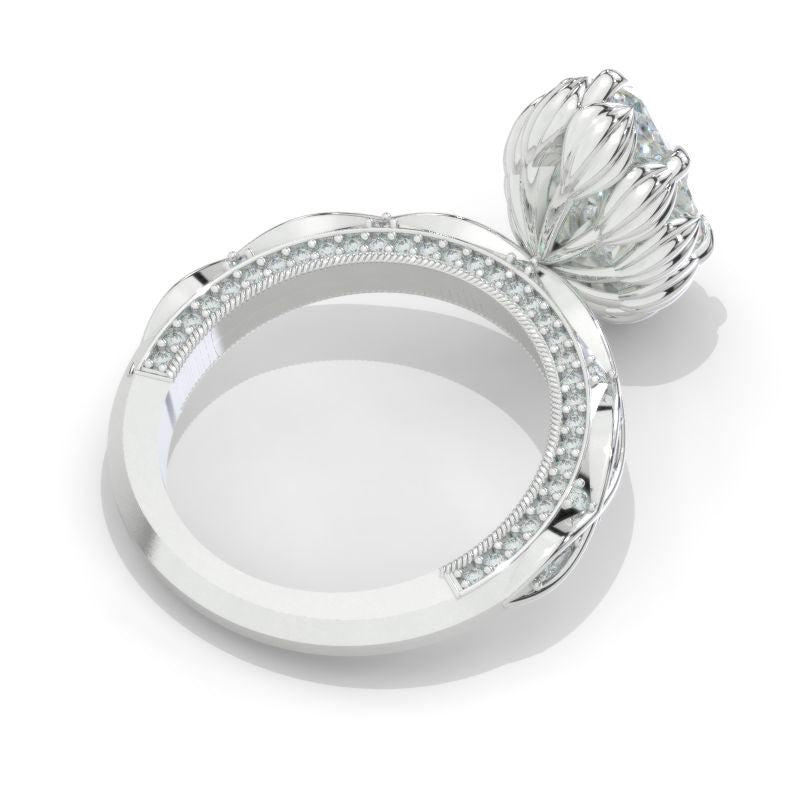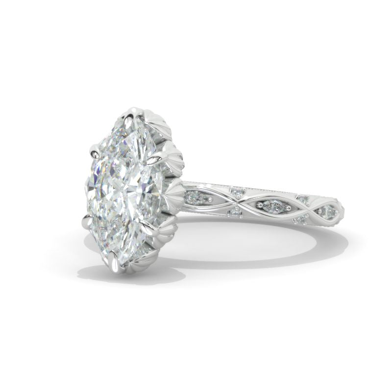The default design option features 12x6mm Marquise LAB-Grown Diamond Center Stone, Accents Stones D-Colorless, VVS1-Clarity, VG-Cut, Ex-Polish, VG-Symmetry