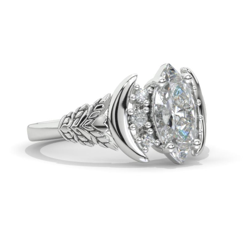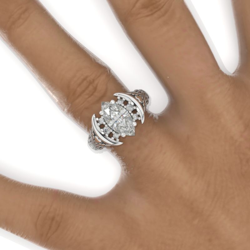 The default design option features 12x6mm Marquise LAB-Grown Diamond Center Stone, D-Colorless, VVS1-Clarity, VG-Cut, Ex-Polish, VG-Symmetry set with D- Colorless LAB-Grown Diamond Accent Stones