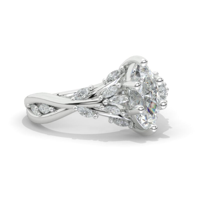 The default design option features 12x6mm LAB-Grown Diamond Marquise Center Stone, D-Colorless, VVS1-Clarity, VG-Cut, Ex-Polish, VG-Symmetry