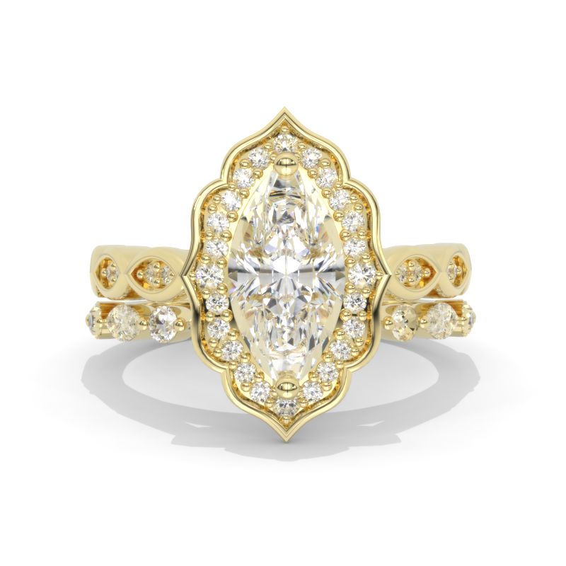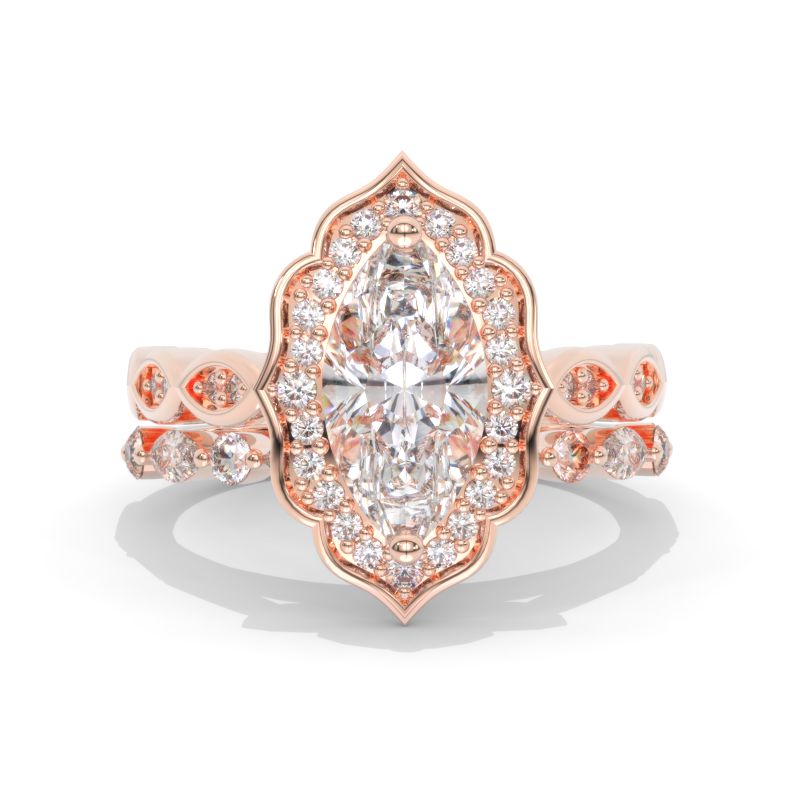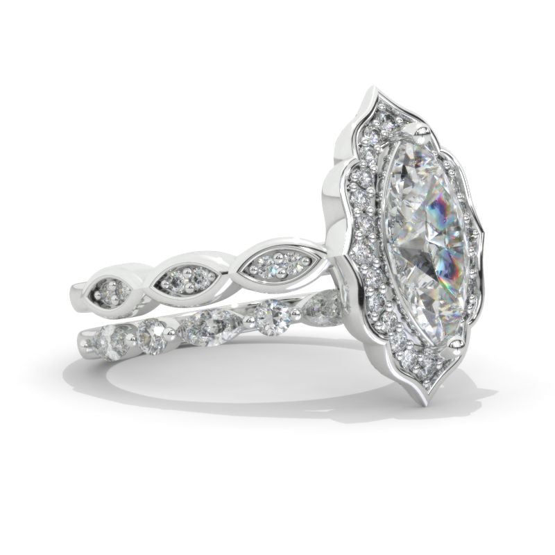 The default design option features approximately 2 Carat 12x6mm Marquise Center Stone,