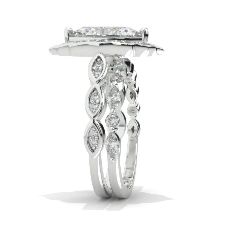 D-Colorless, VVS1-Clarity, VG-Cut, Ex-Polish, VG-Symmetry set with D- Colorless Moissanite Accent Stones