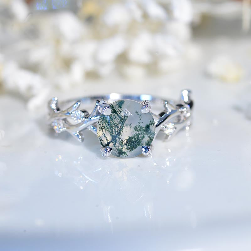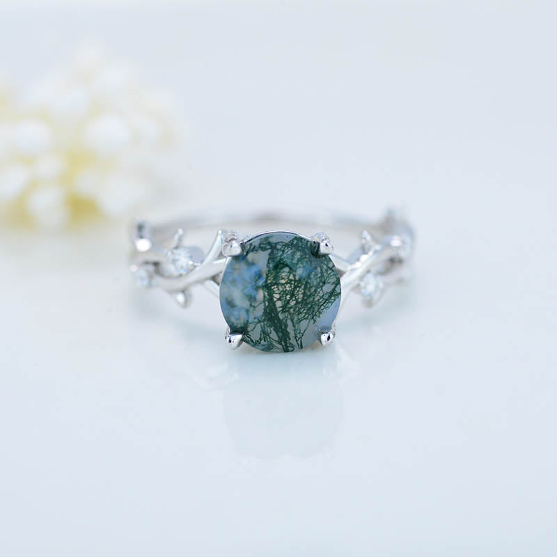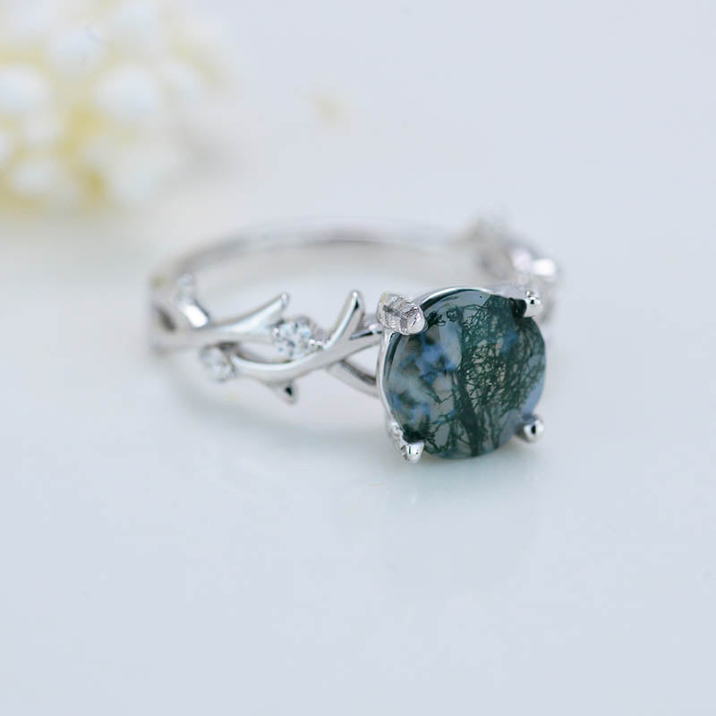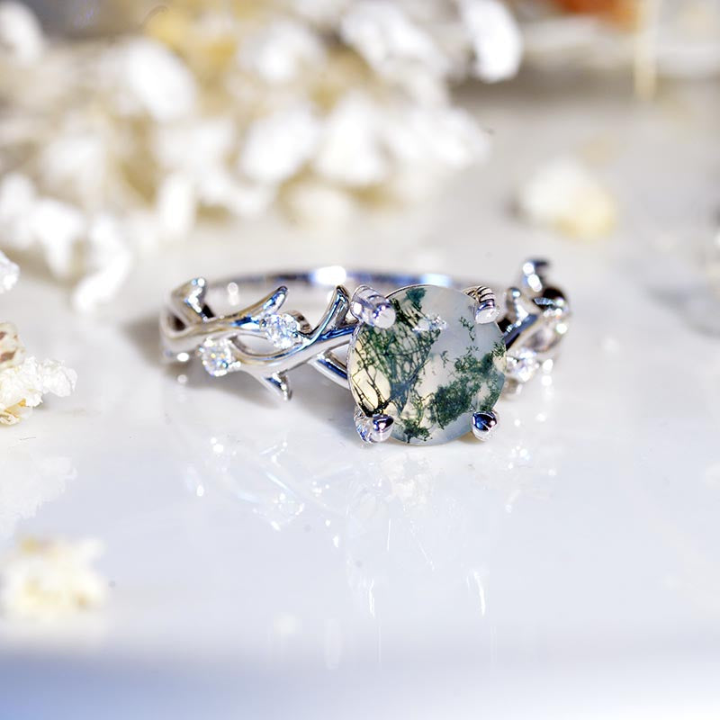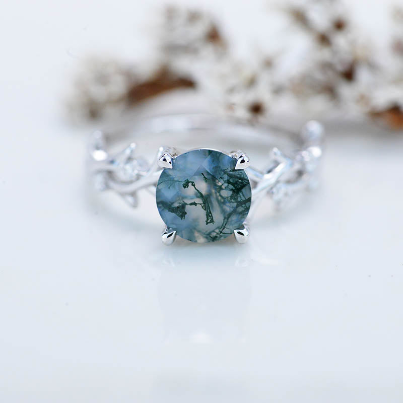 2 Carat Genuine Moss Agate Twig Floral White Gold Engagement Ring Mode - Giliarto