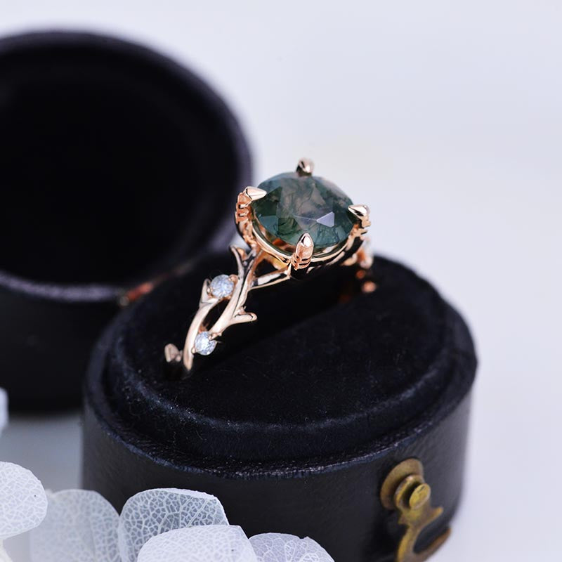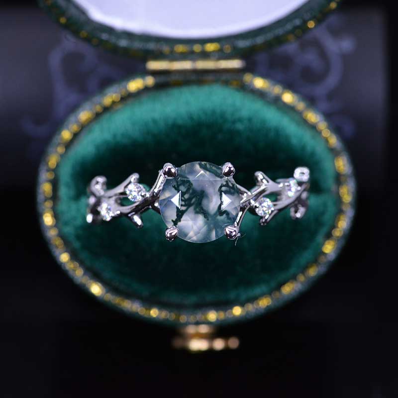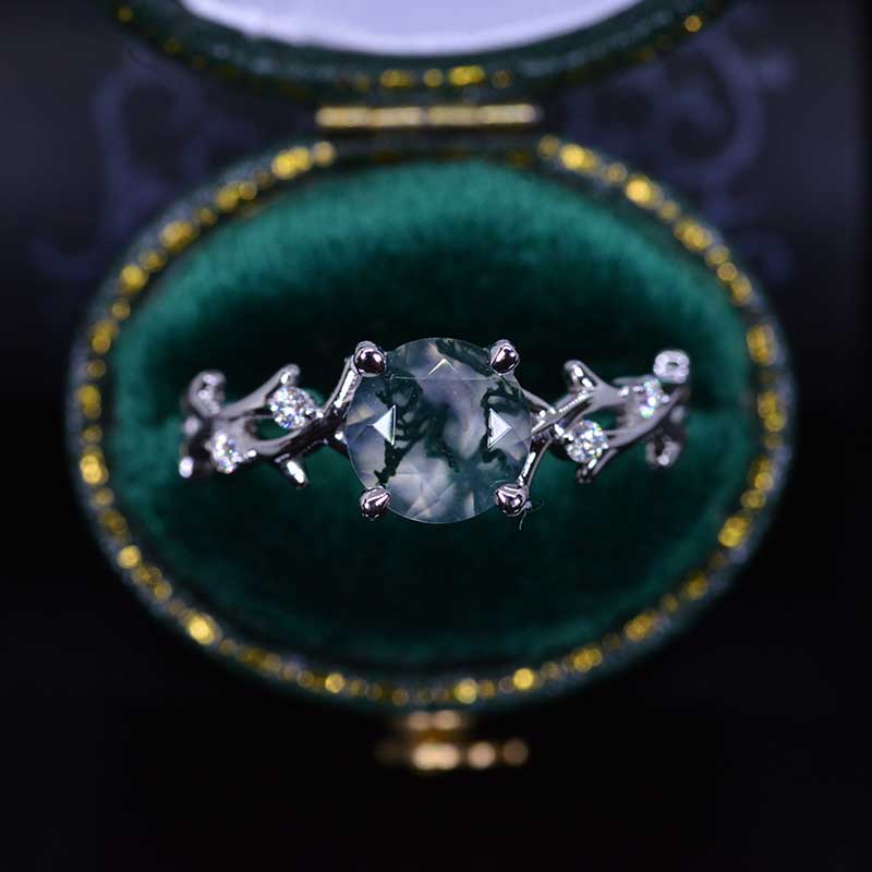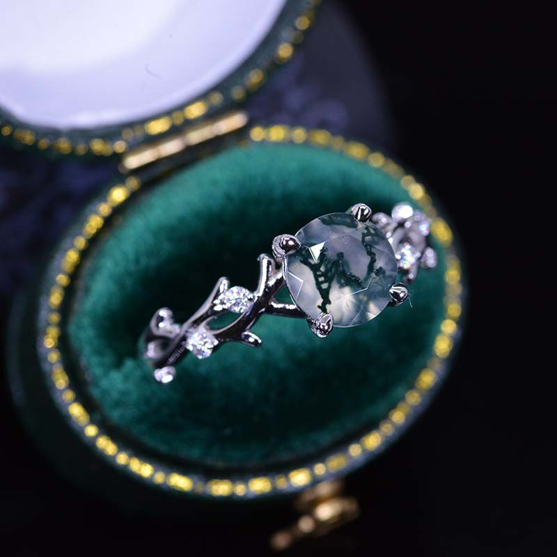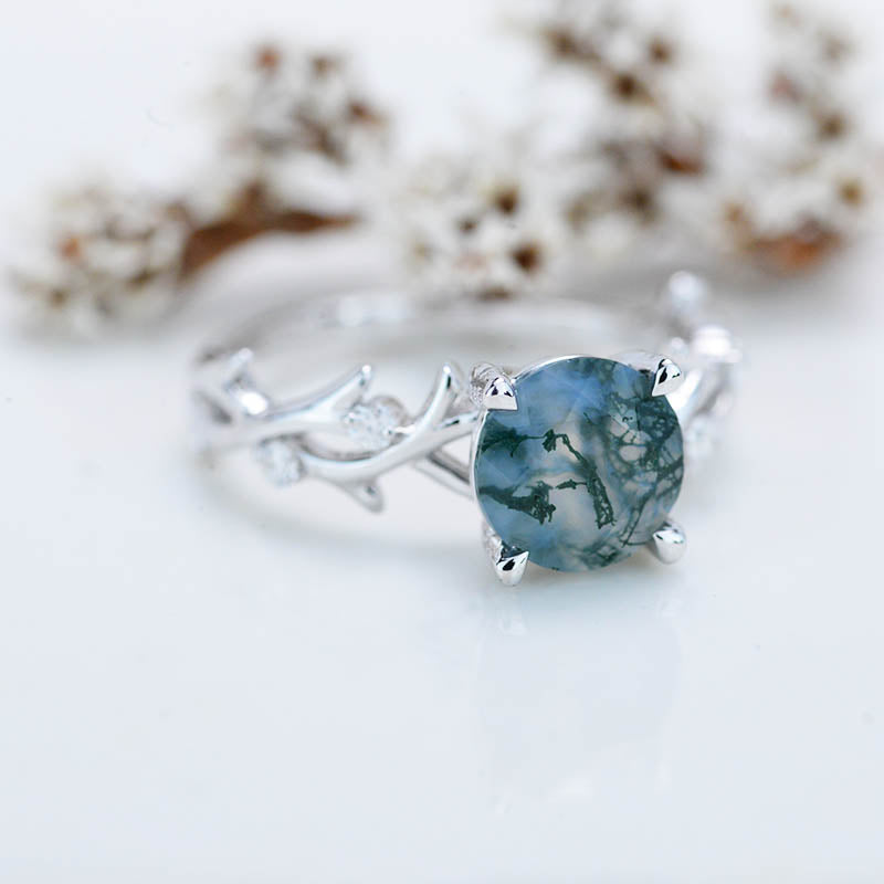 2 Carat Genuine Moss Agate Twig Floral White Gold Engagement Ring Mode - Giliarto