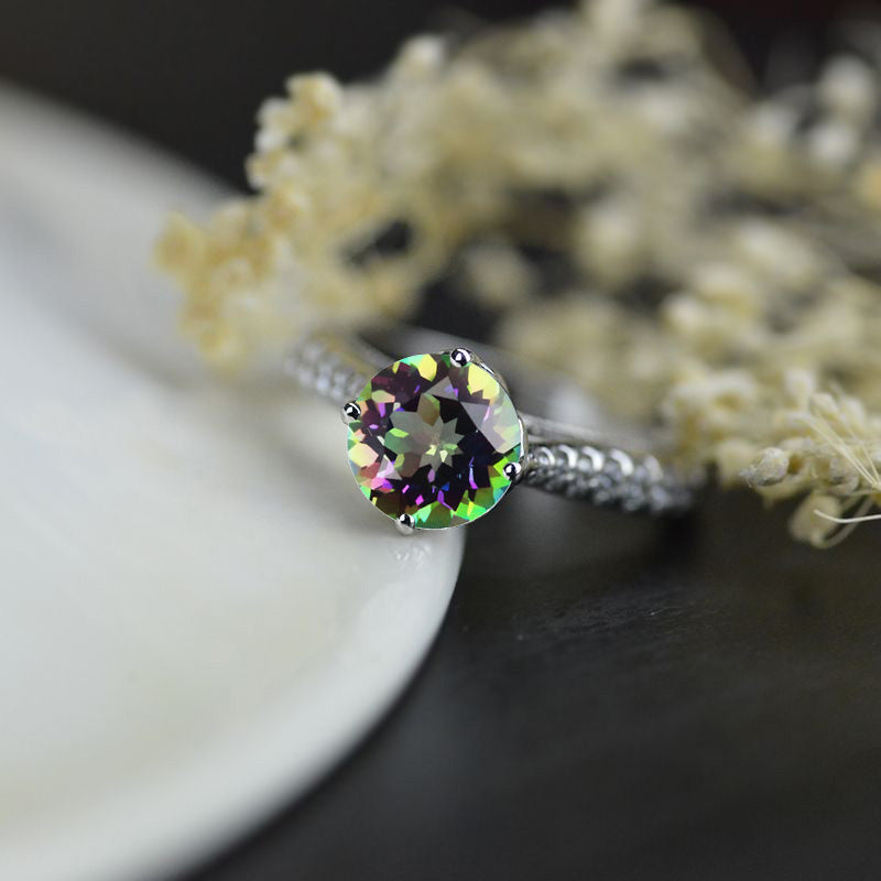 2 Carat Mystic Topaz Engagement 14K White Gold Ring Classic Customized - Giliarto