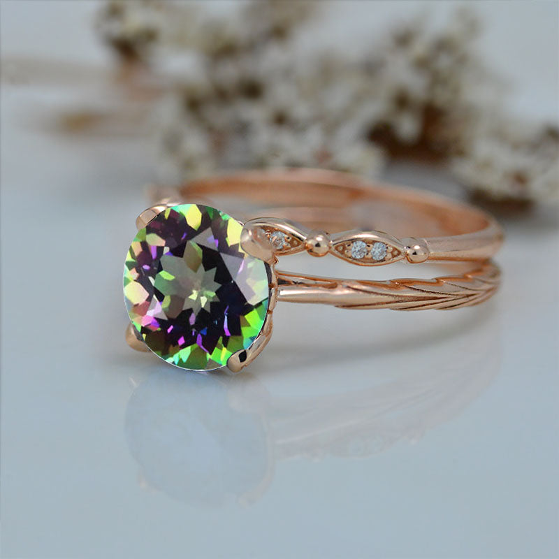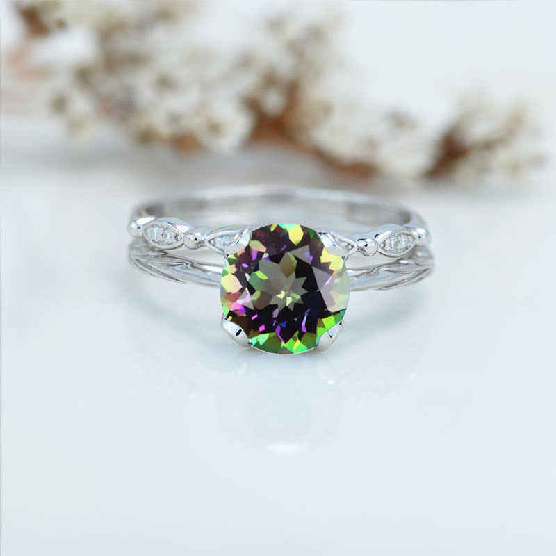 2 Carat Mystic Topaz Engagement Eternity Gold Rings Set