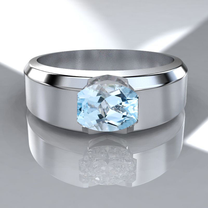 2 Carat Genuine Natural Aquamarine-Grade AAA+Ā Oval 9x7mm, Ex-Cut, Ex-Polish, VG-Symmetry in 14K White GoldĀ Men'sĀ Ring.Ā