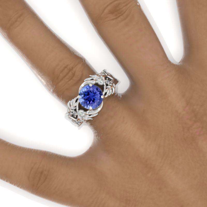 2 Carat Natural Genuine Tanzanite Floral Twig 14K White Gold Engagemen - Giliarto