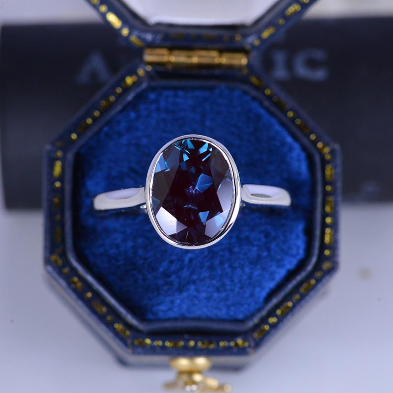 2 Carat Oval Alexandrite Bezel Set Gold Engagement Ring - Giliarto