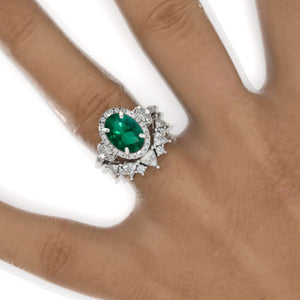 2 Carat Oval Emerald Halo Floral Engagement Ring Eternity Ring Set Mod - Giliarto