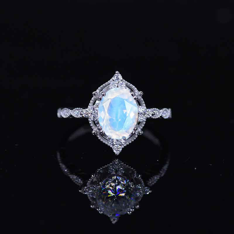2 Carat Oval Genuine Moonstone Halo Vintage Engagement Ring - Giliarto