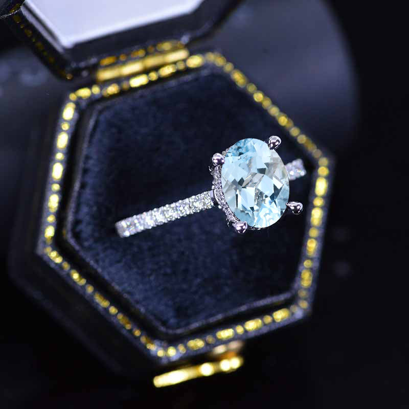 2 Carat Oval Genuine Natural Aquamarine Hidden Halo Engagement Ring - Giliarto