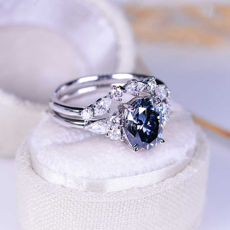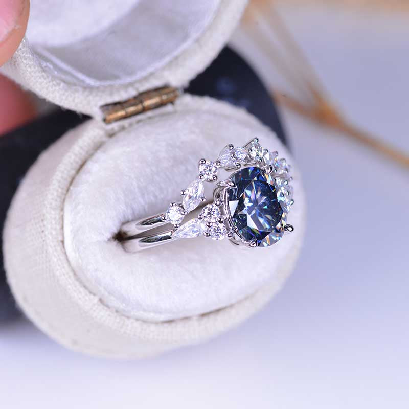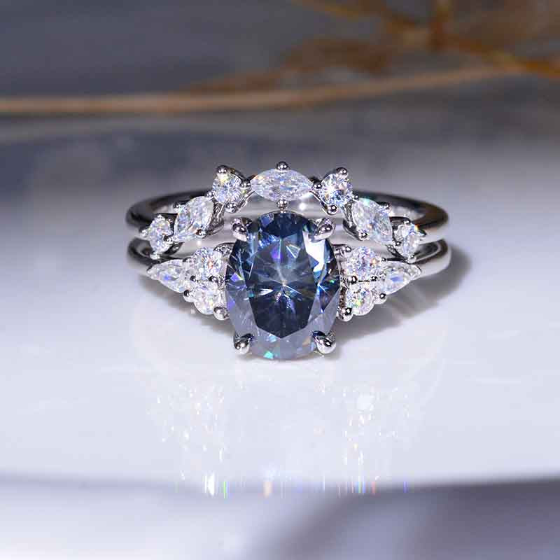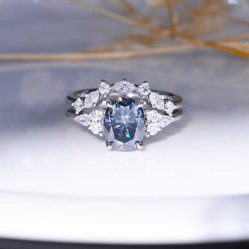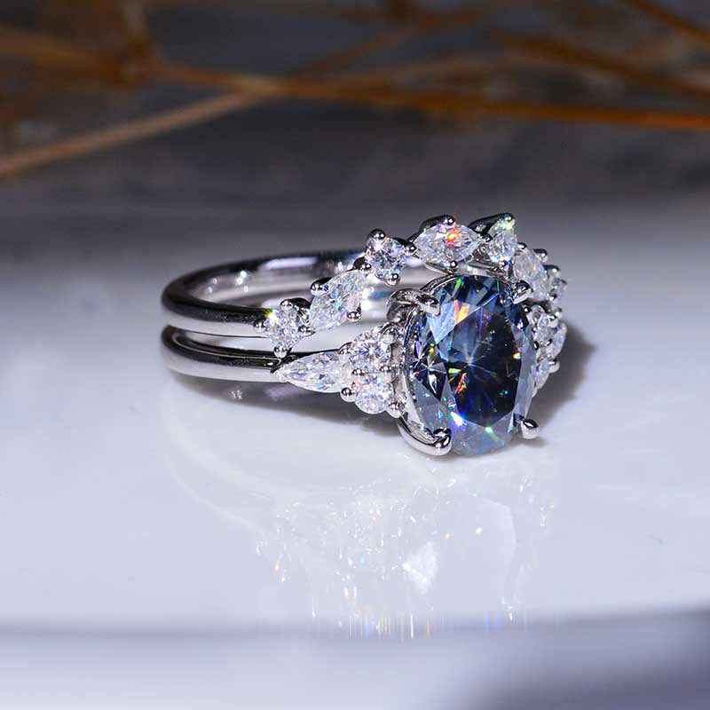 Engagement: 2 Carat Giliarto Moissanite Oval 9x7mm Gray, VVS1-Clarity, VG-Cut, Ex-Polish, VG-Symmetry Center Stone with 38 Colorless 0.5 CTW Moissanite