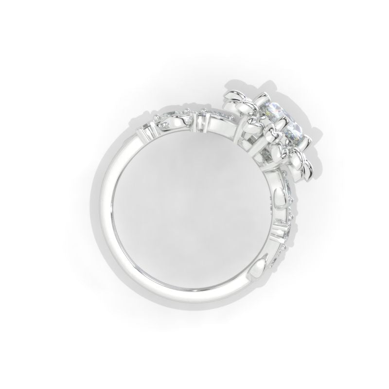 Engagement Ring: LAB-Grown Diamond Oval 9x7mm D-Colorless, VVS1-Clarity, VG-Cut, Ex-Polish, VG-Symmetry Center Stone in 14K White Gold Ring Set.