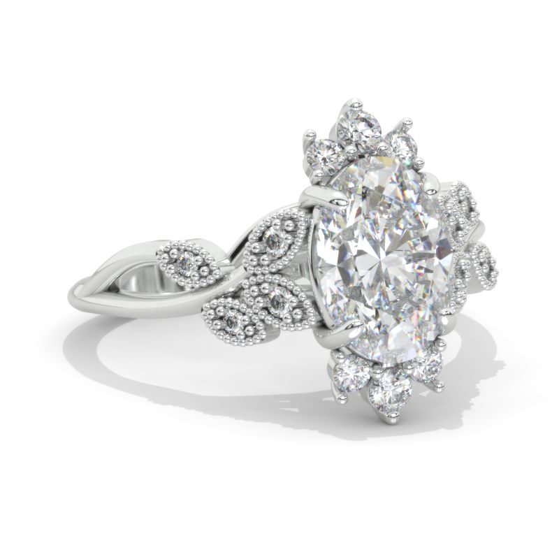 2 Carat Oval LAB-Grown Diamond Floral Setting White Gold Engagement Ring Model 974