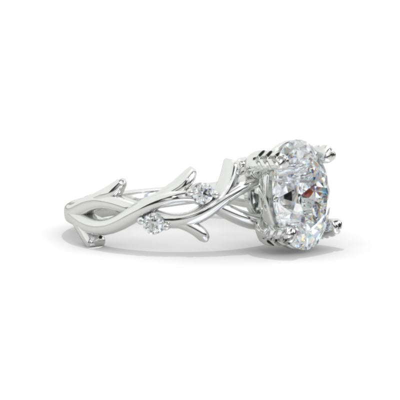 2 Carat Oval LAB-Grown Diamond Floral Twig Setting White Gold Engagement Ring Model 563