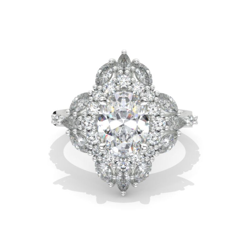 Approximately 2+ Carat LAB-Grown Diamond Oval 9x7mm Center Stone with -0.4 CTW