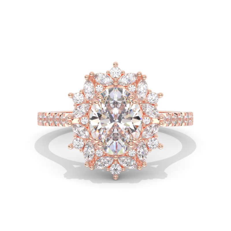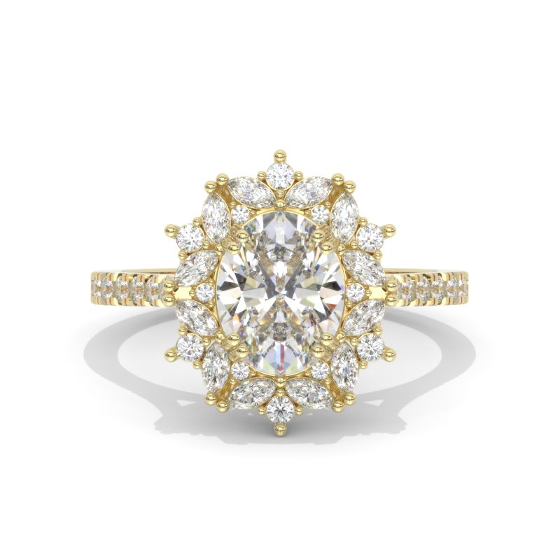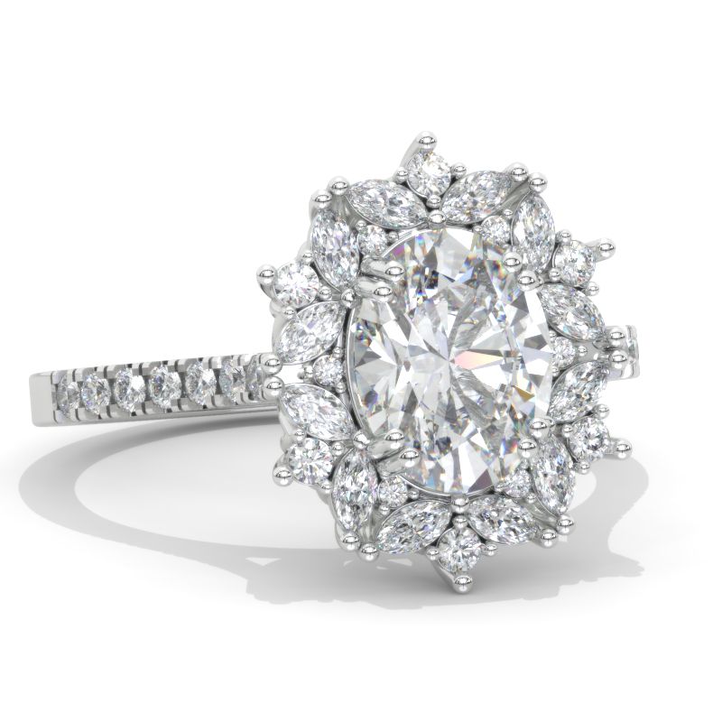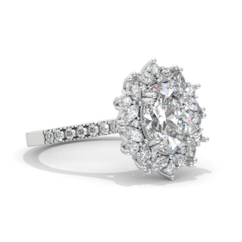 2 Carat Oval LAB-Grown Diamond Halo Vintage 14K White Gold Engagement Ring Model 804