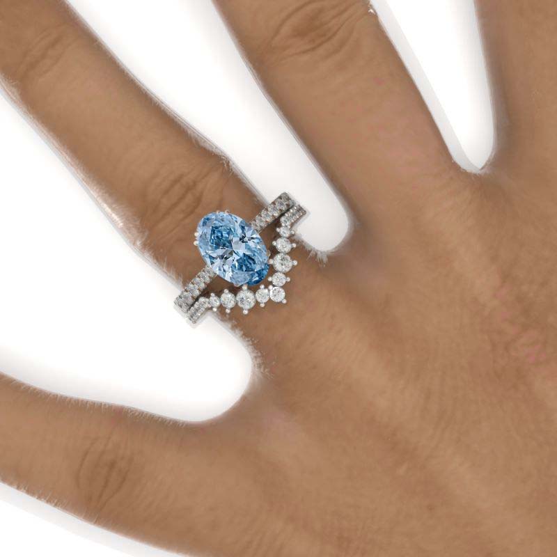 Engagement : Approximately 2+ Carat Lab-Grown Diamond Oval 10x7mm Fancy Vivid Blue, VVS1-Clarity, VG-Cut, Ex-Polish, VG-Symmetry Center Stone with 38 Colorless 0.5 CTW Lab-Grown Diamond