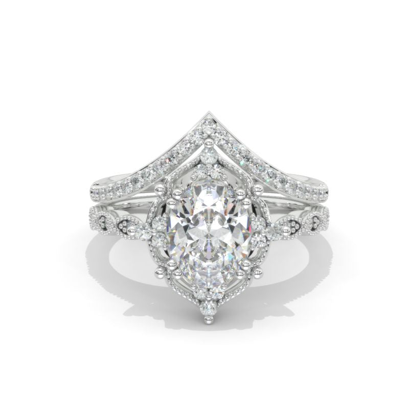 Engagement: 2 Carat Giliarto Moissanite Oval 9x7mm D-Colorless, VVS1-Clarity, VG-Cut, Ex-Polish, VG-Symmetry Center Stone with 38 Colorless 0.5 CTW Moissanite