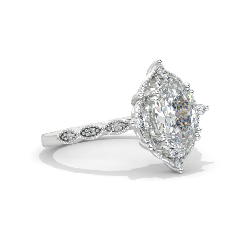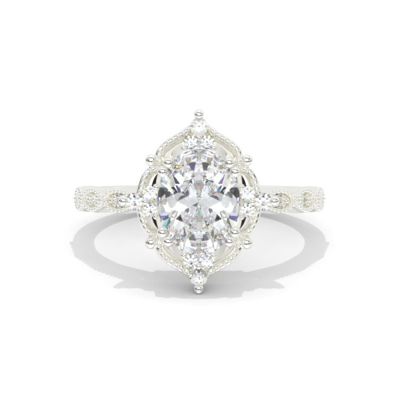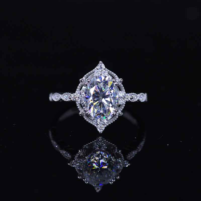 Engagement: 2 Carat Giliarto Moissanite Oval 9x7mm D-Colorless, VVS1-Clarity, VG-Cut, Ex-Polish, VG-Symmetry Center Stone with 38 Colorless 0.5 CTW Moissanite