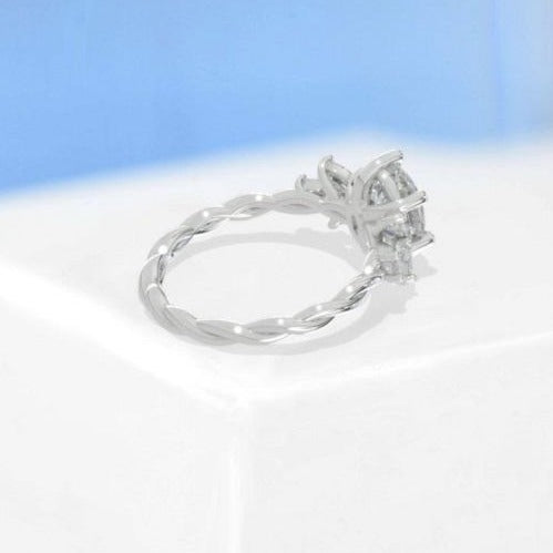 2 Carat Oval Moissanite Vintage Engagement Rose Gold Ring, Vintage Marquise Cut Rose Gold Ring, 2ct Oval Rope Shank Ring