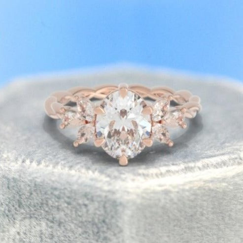 2 Carat Oval Moissanite Vintage Engagement Rose Gold Ring, Vintage Mar - Giliarto
