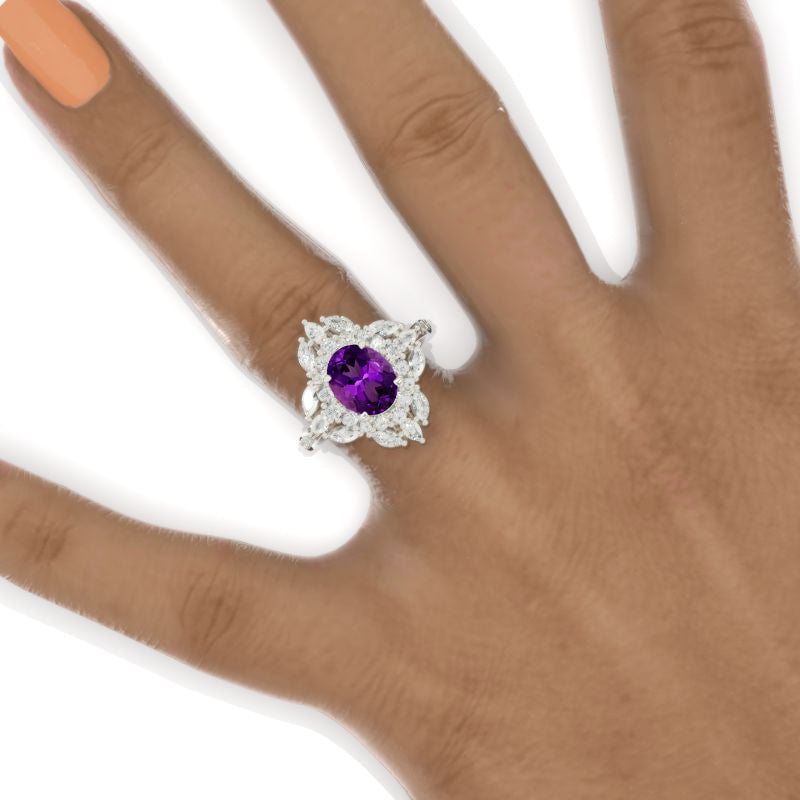 2 Carat Oval Natural Amethyst Halo 14K White Gold Engagement Ring - Giliarto