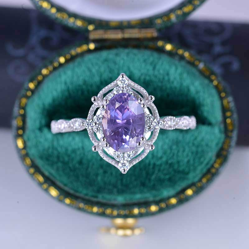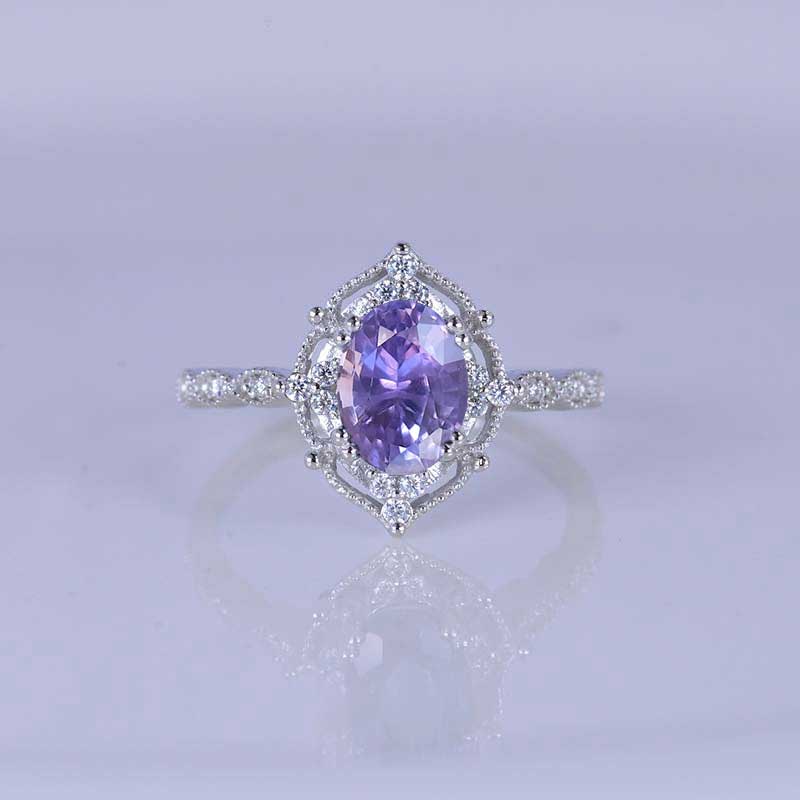 2 Carat Oval Purple Sapphire Halo Vintage Engagement Ring - Giliarto