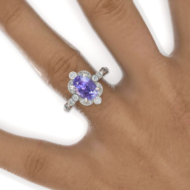 2 Carat Oval Purple Sapphire Vintage Setting White Gold Engagement Rin - Giliarto