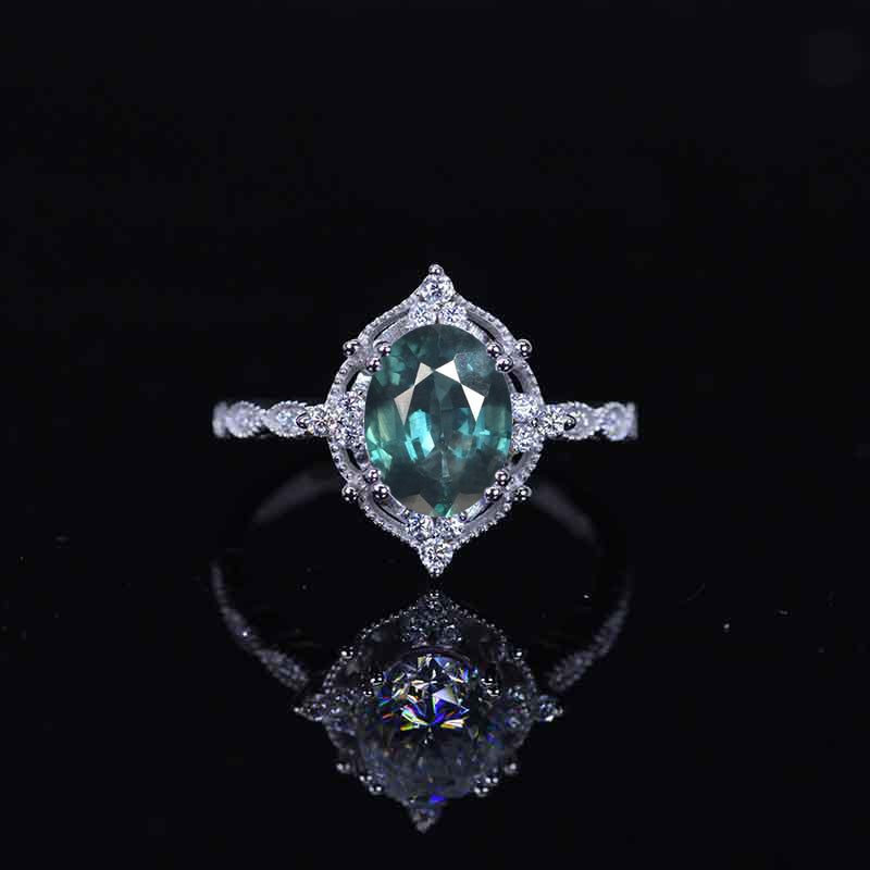 2 Carat Oval Teal Sapphire Halo Vintage Engagement Ring - Giliarto