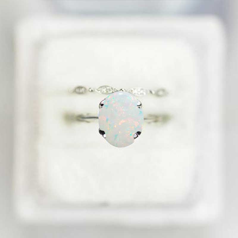 2 Carat Oval White Opal Engagement Eternity Gold Rings Set - Giliarto