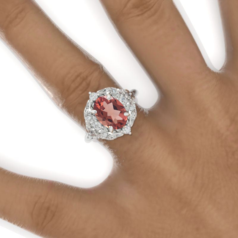 2 Carat Oval Zultanite Floral Leaves Setting White Gold Engagement Ring