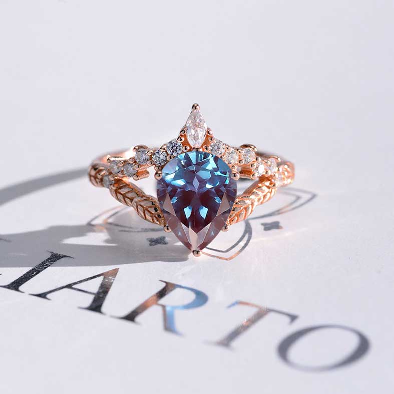 Pear Shape Ethically Lab-Grown Alexandrite in 14K Rose Gold Engagement ring.