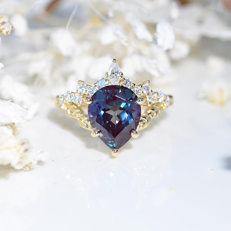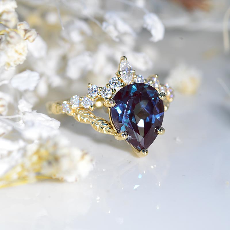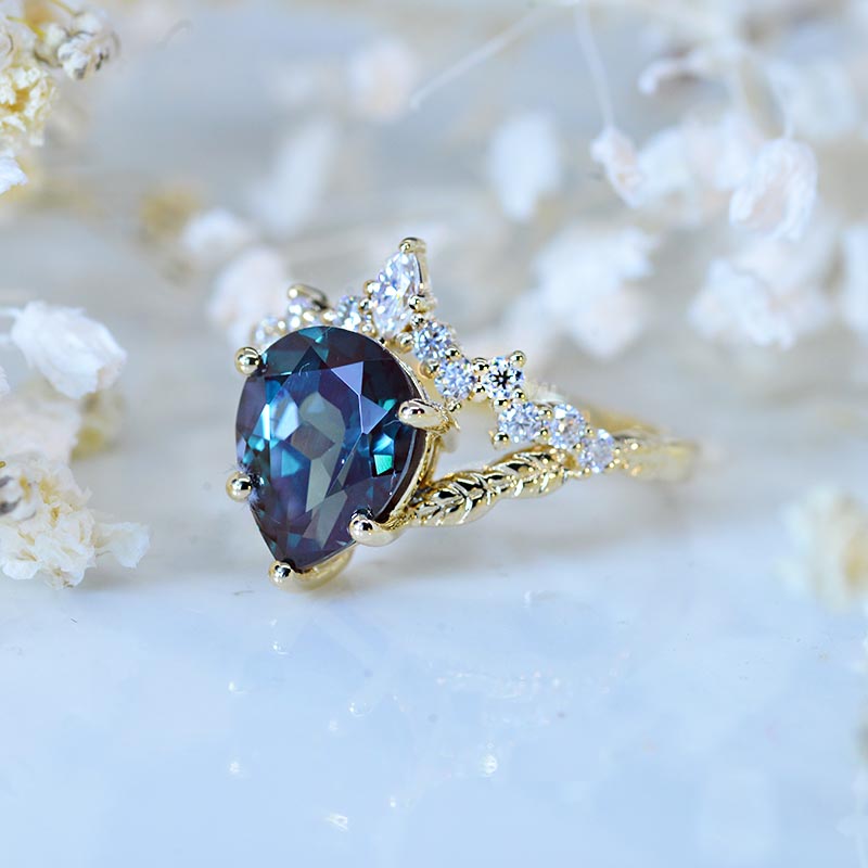 2 Carat Pear Shape Alexandrite Floral Gold Ring Model 1071