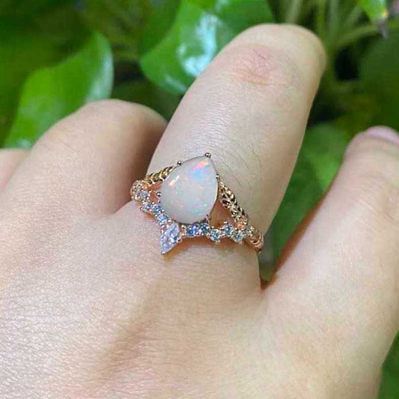 Pear Shape Natural White Opal 14K Rose Gold Engagement ring.