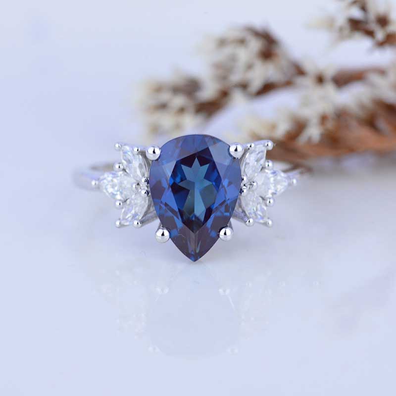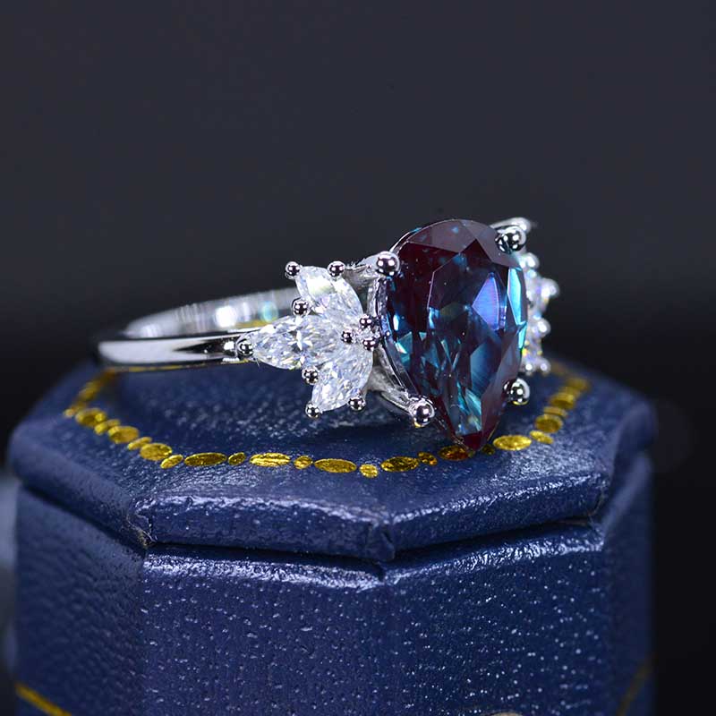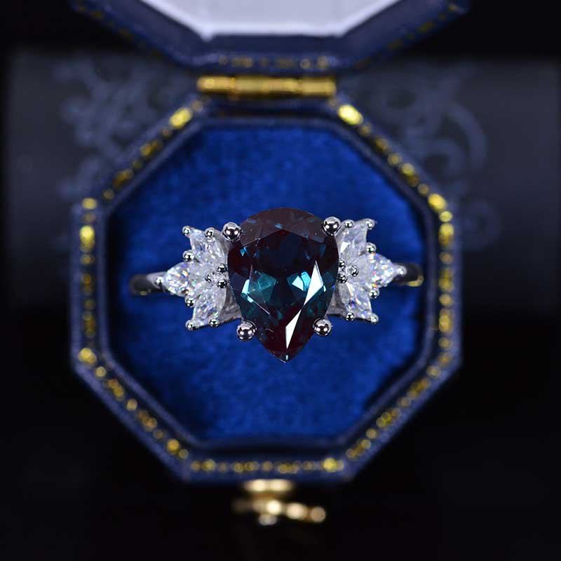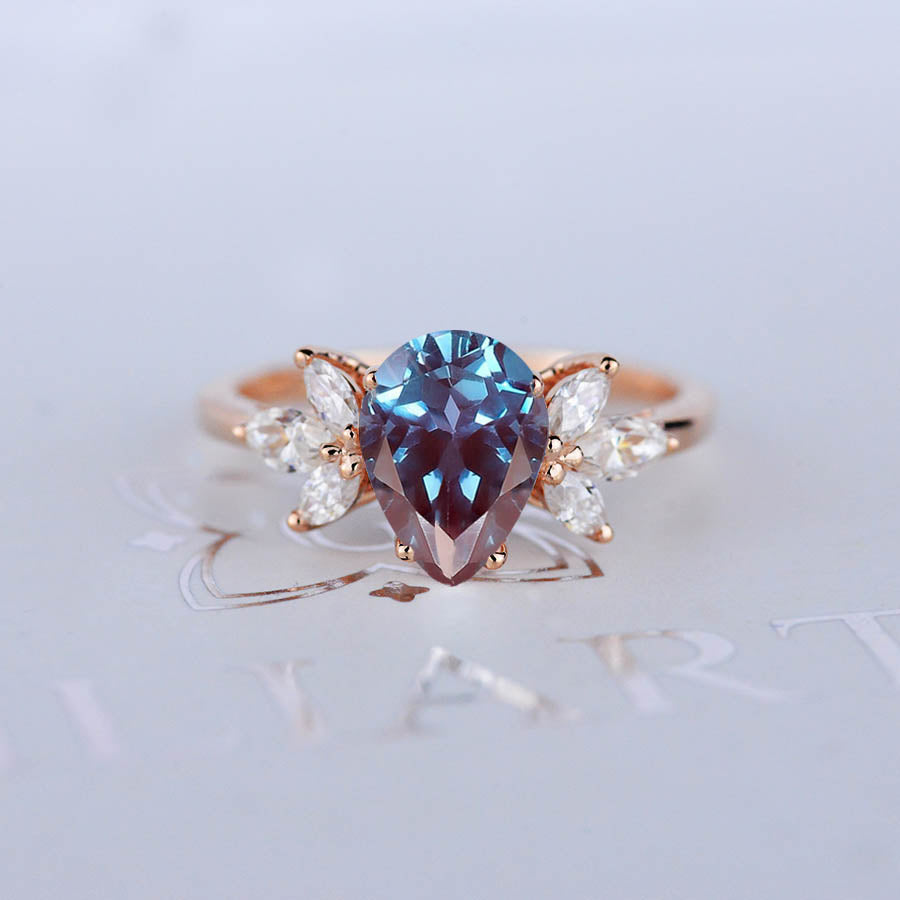 3 Carat Pear Shaped Alexandrite Engagement Ring. Vintage Unique Marquise Cut Cluster Engagement Ring