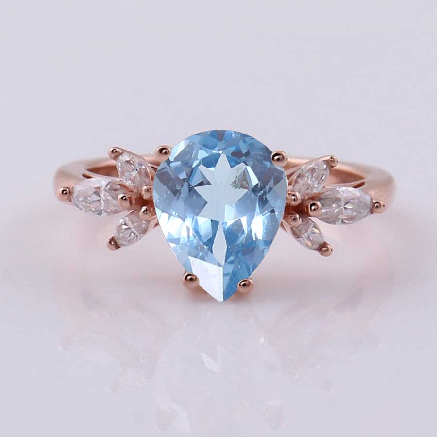 The default design option features 10x8mm Pear Cut Genuine Natural Aquamarine Stone
