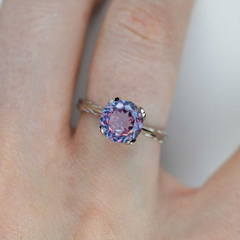 2 Carat Portuguese Cut Alexandrite Engagement Rose Gold Ring - Giliarto