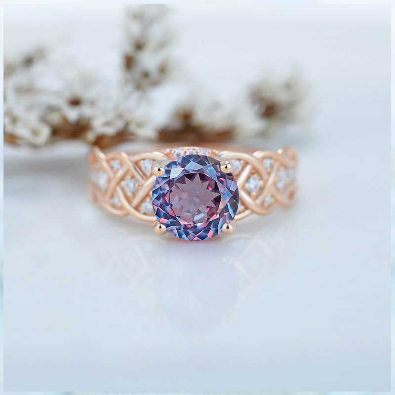 2 Carat Portuguese Cut Alexandrite Ring Round Cut Rose Gold Ring July - Giliarto